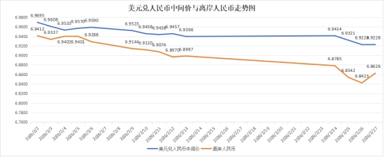 離岸人民幣:升值更為顯著,2月末收于6.8626,全月人民幣累計(jì)升值幅度約1.2%-1.3%(2月26日盤中最高升至6.8271,創(chuàng)2023年4月以來(lái)新高)。
