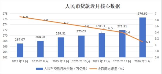 2025年7月貸款余額同比6.9%逐步回落至2026年1月6.1%,主要受地方化債置換貸款影響,還原后實(shí)際增速約7%,信貸支持力度未減弱;2026年1月的信貸投放繼續(xù)向?qū)嶓w核心領(lǐng)域傾斜。