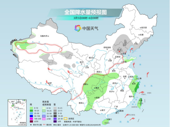 中央氣象臺預計,今天,內蒙古中部、黑龍江北部和東部、遼寧西部、新疆北疆北部和南疆西部山區(qū)、青海北部、甘肅河西、河北大部、山西中北部、山東北部等地部分地區(qū)有小到中雪或雨夾雪,其中,新疆南疆西部山區(qū)、河北北部、北京北部等地部分地區(qū)有大雪。甘肅東南部、陜西南部、山東中部、安徽東南部、上海、浙江、福建北部、廣東中南部、廣西東南部、四川盆地西部、云南東南部、海南島、臺灣島等地部分地區(qū)有小到中雨,其中,海南島東北部等地局地有大雨。