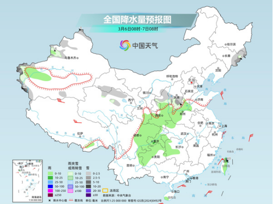 明天,黑龍江東南部、吉林東部、新疆西部和北部山區(qū)、青海北部、甘肅河西、陜西北部、山西中南部等地部分地區(qū)有小到中雪或雨夾雪,其中,吉林東部、新疆南疆西部山區(qū)、山西東南部等地局地有大到暴雪。