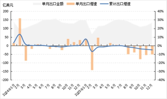 圖3:2025年1-12月我國服裝及衣著附件出口情況