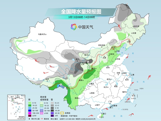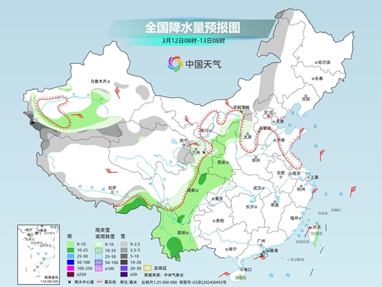 具體來看,今天內(nèi)蒙古中東部、黑龍江西北部、新疆南疆山區(qū)、西藏北部和南部、青海北部、甘肅河西和南部、寧夏南部、陜西北部、華北北部、川西高原等地部分地區(qū)有小到中雪或雨夾雪,其中,新疆南疆西部山區(qū)局地有大到暴雪;新疆南疆盆地、西藏東南部、西北地區(qū)東部、西南地區(qū)東北部和南部等地部分地區(qū)有小到中雨。