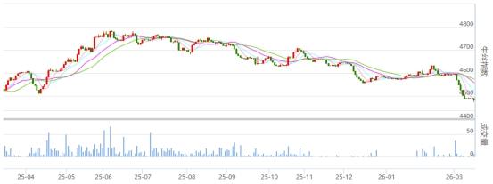 今日(周一)生絲電子盤面中,現(xiàn)貨月合約260325生絲合約成交收紅,收于45萬關(guān)口。其余合約價格繼續(xù)略收綠,在45萬下方波動。今日生絲電子指數(shù)收于4487.68點,與去年同期相比下跌0.89%。