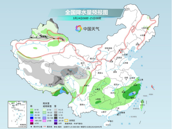 未來(lái)三天(3月24日至26日),南方多地陰雨天氣持續(xù),而且月底還將有一輪較強(qiáng)降雨過(guò)程,需防范連續(xù)降雨對(duì)交通、農(nóng)業(yè)等方面的不利影響。陰雨影響下,西南到江南等地升溫乏力,而北方多地氣溫將沖高,25日前后達(dá)到近期高點(diǎn),暖如常年4月下旬。