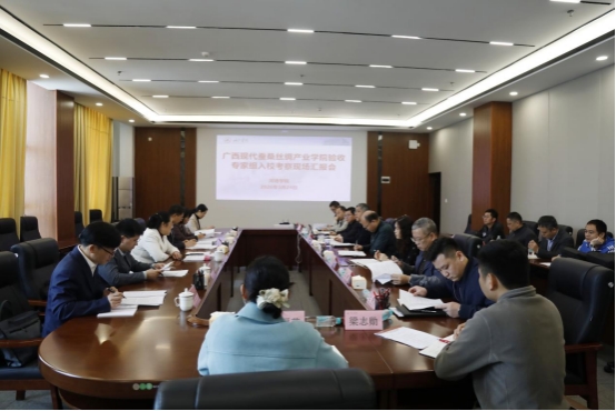3月24日,廣西現(xiàn)代蠶桑絲綢產(chǎn)業(yè)學院終期評估專家組組長、廣西科技大學原副校長秦小云一行到河池學院對自治區(qū)級示范性現(xiàn)代產(chǎn)業(yè)學院進行終期現(xiàn)場驗收評估。學校校長馬少健出席工作匯報會并致辭,副校長賀衛(wèi)國主持會議,教務處、科學技術處、財務處、國有資產(chǎn)與設備管理處等相關職能部門負責人和產(chǎn)業(yè)學院負責人、專業(yè)教師參加會議。