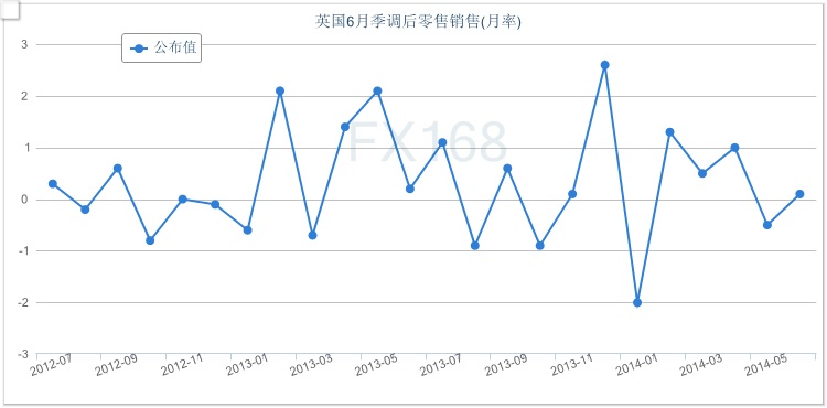 英國統(tǒng)計局(ONS)周四(7月24日)公布的數(shù)據(jù)顯示,英國6月零售銷售月率增長0.1%,預期增長0.3%,前值下跌0.5%。