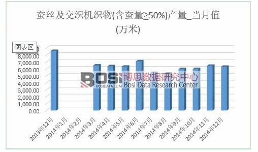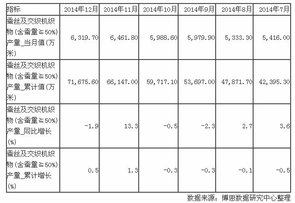 2014年我國蠶絲及交織機(jī)織物產(chǎn)量達(dá)71675.6萬米 累計(jì)增長0.5%