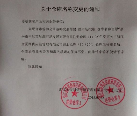 關(guān)于倉(cāng)庫(kù)名稱變更的通知