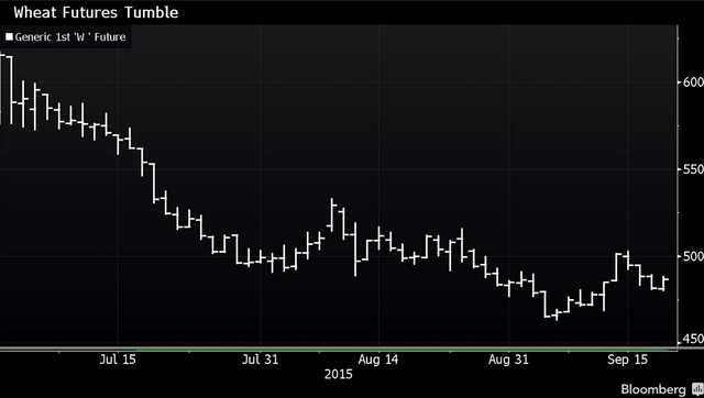 國際小麥期貨價格自6月底來已經(jīng)下跌了21%,創(chuàng)1986年來最大三個月跌幅。隨著美國、俄羅斯和烏克蘭產(chǎn)量增多,全球庫存在明年收獲季節(jié)開始前有望攀升至歷史高位。
