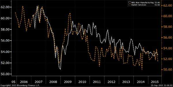 還將于周四公布的數(shù)據(jù)有國家統(tǒng)計局9月份非制造業(yè)PMI和財新中國服務業(yè)PMI。今年大多數(shù)時候一直都是服務業(yè)相對強勁,抵消了制造業(yè)的相對疲軟。8月份服務業(yè)PMI下滑讓這一描述是否繼續(xù)適用受到懷疑。若9月份服務業(yè)PMI進一步下跌,尤其是如果還有跡象表明服務業(yè)在裁員,則會是令人不安的跡象。