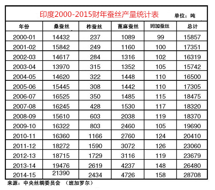 2000-2015財(cái)年印度蠶絲產(chǎn)量統(tǒng)計(jì)