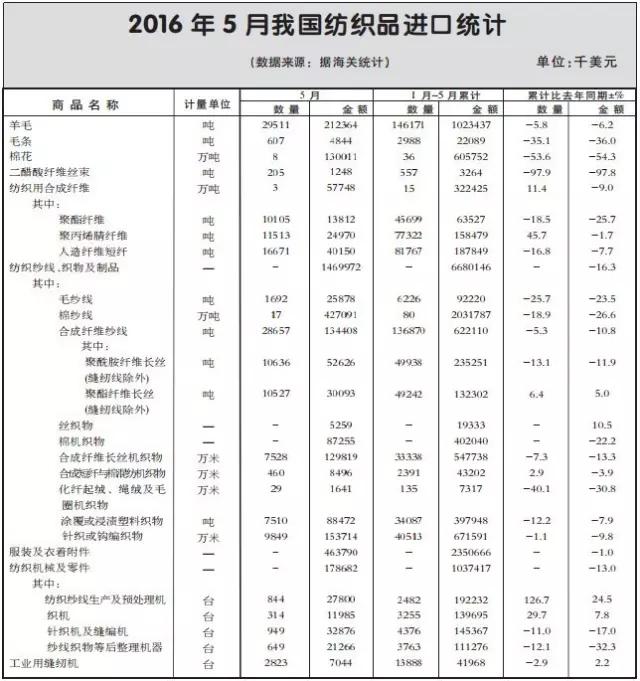 進(jìn)口:紡織品進(jìn)口降幅收窄服裝恢復(fù)增長
