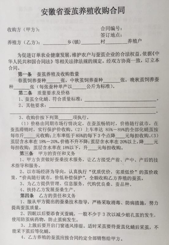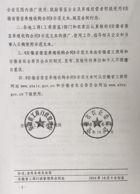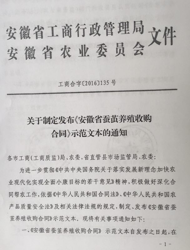 安徽省工商管理局 安徽省農(nóng)委關(guān)于制定發(fā)布《安徽省蠶繭養(yǎng)殖收購合同》示范文本的通知