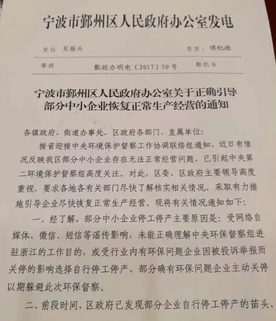 今天,流出了兩張浙江寧波市有關(guān)正確引導(dǎo)部分中小企業(yè)恢復(fù)正常生產(chǎn)經(jīng)營的通知:大家一起來看看,這算是好消息吧!
