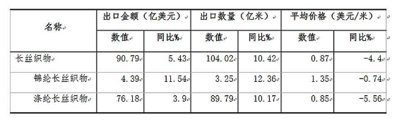 1、長(zhǎng)絲織物出口增長(zhǎng)