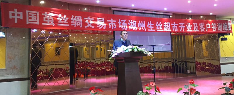 晚間,中國繭絲綢交易市場湖州生絲超市開業(yè)暨客戶答謝晚宴隆重舉行。一百多名絲綢企業(yè)家蒞臨現(xiàn)場,氣氛熱烈。晚宴由市場徐錚副總經(jīng)理主持。市場劉卓明總經(jīng)理對(duì)大家的到來表示熱烈的歡迎,對(duì)絲綢企業(yè)對(duì)市場多年的信任和支持表示衷心的感謝。他在致辭中表示,市場設(shè)立湖州生絲倉庫有兩個(gè)初衷:聚物和聚人。所謂聚物,也就是繭絲綢市場積極利用平臺(tái)資源把中西部主產(chǎn)區(qū)的繅絲企業(yè)的產(chǎn)品進(jìn)行匯集,給大家多一份選擇,讓大家買到最適合自己的產(chǎn)品,從而降低采購成本、縮短采購時(shí)間;所謂聚人,就是生絲超市積極打造信息和價(jià)格走勢的交流場所,中西部的生產(chǎn)和收購情況傳導(dǎo)給大家,另一方面也把湖州終端信息和流行趨勢反向傳導(dǎo),實(shí)現(xiàn)雙向的交流。劉總希望大家繼續(xù)給與繭絲綢市場支持,市場也會(huì)全心全意為大家做好服務(wù)工作。
