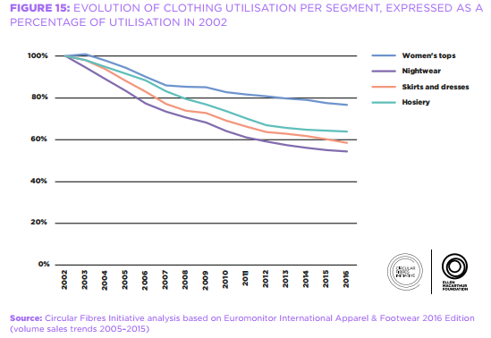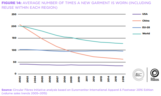 同樣的模式也出現(xiàn)在中國,在過去15年里,服裝使用率下降了70%。
