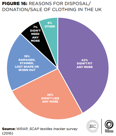 數(shù)據(jù)顯示,有26%的衣服是因為不再喜歡而被丟棄了(見圖),42%的衣服是因為不再適合,租賃模式可以滿足這一類需求。