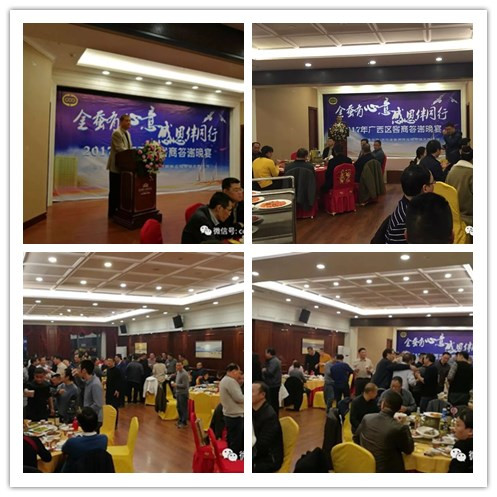 久久聯(lián)合,歲歲相長。2017年12月18日,中國繭絲綢交易市場2017年(廣西區(qū))客商答謝晚宴在宜州區(qū)東正國際大酒店圓滿舉行。答謝晚宴邀請了當?shù)叵嚓P部門領導、百余位廣西區(qū)內客商和區(qū)外部分外貿客商參加。大家歡聚一堂,相互交流、共敘友情。