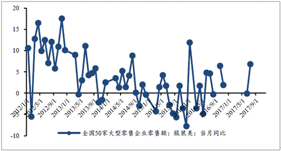 2017年年初至今限額以上零售額:服裝類:當(dāng)月同比(%)
