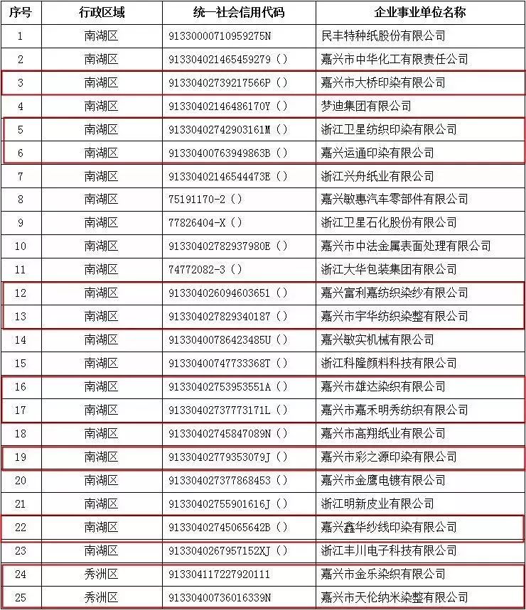 一、嘉興市水環(huán)境重點(diǎn)排污單位名錄(共267家,其中紡織印染企業(yè)151家)
