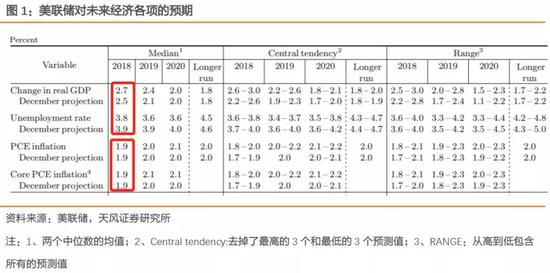 2)鮑威爾對經(jīng)濟的預期較為樂觀,2018年為2.7% vs. 2017年12月的2.5%)、并下調了失業(yè)率的預測(2018年3.8% vs. 2017年12月的3.9%),但對于PCE通脹和核心PCE通脹的預測保持不變在1.9%