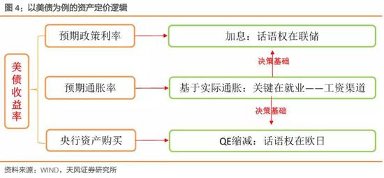 長期美債收益率的定價有三部分:預期的政策利率、預期的通脹水平和期限偏好溢價(term premium),其中預期的政策利率就取決于美聯(lián)儲未來的加息預期(但是總體空間并不太大),而期限偏好溢價則取決于歐日央行的資產(chǎn)購買,可以說這兩部分差不多就代表了貨幣政策變動的直接影響,但中短期空間都不大。