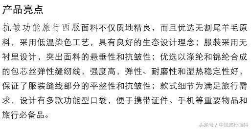 西服雖然是舶來品,但如今中國企業(yè)生產(chǎn)的這款防皺西服,卻是全世界獨(dú)具特色的產(chǎn)品