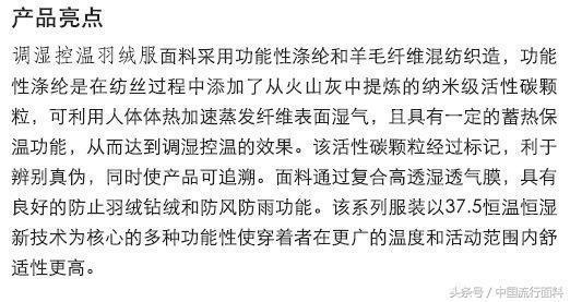 在CCTV財(cái)經(jīng)頻道的報(bào)道中,由丹毛紡織的創(chuàng)新面料產(chǎn)品制作的調(diào)濕控溫羽絨服精彩亮相: