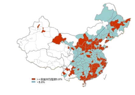 2000-2010年我國(guó)地級(jí)市常住人口增速對(duì)比圖