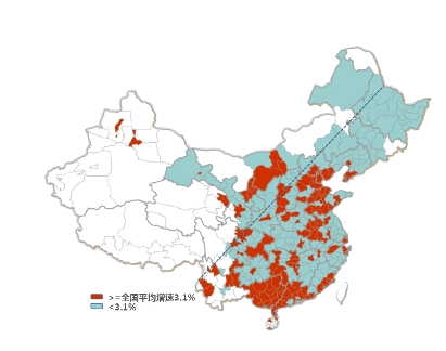 2016年我國(guó)人口密度等高線數(shù)據(jù)來(lái)源:省統(tǒng)計(jì)年鑒,城市統(tǒng)計(jì)公報(bào)