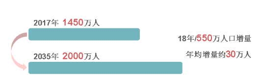 《廣州市城市總體規(guī)劃(2017-2035年)》已表明廣州2035年常住人口規(guī)??刂圃?000萬(wàn)人左右,而2017年廣州常住人口為1450萬(wàn)人,這樣看來(lái)到2035年還有550萬(wàn)增長(zhǎng)空間,平均每年可增加約30萬(wàn)人口。