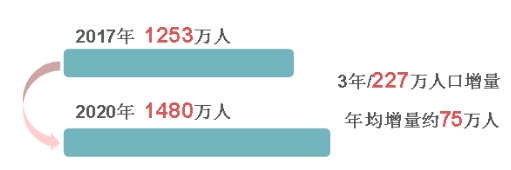 根據(jù)《深圳十三五規(guī)劃》,到2020年深圳常住人口預(yù)期目標(biāo)1480萬(wàn)人,2017年是1253萬(wàn)人,可見未來(lái)三年深圳常住人口還有227萬(wàn)的增長(zhǎng)空間,年均可增長(zhǎng)約75萬(wàn)人。