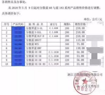 在巨大的環(huán)保壓力下,染料生產(chǎn)企業(yè)產(chǎn)能無法完全釋放,生產(chǎn)成本不斷攀升,產(chǎn)品價格將被迫再度上漲。昨日,浙江某公司已經(jīng)發(fā)出了漲價通知。
