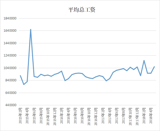 從平均總工資曲線走勢圖上看,4月份“50企業(yè)”平均總工資較3月份小幅上漲,收于10586890.802點(diǎn),上漲了105784.3434,漲幅為11.1%。4月工資增加主要因?yàn)槭袌鲇唵螖?shù)量增加,工人工作時(shí)間增加,增加了平均總工資額度。