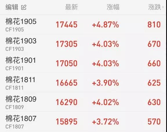 近日,鄭棉再次迎來一波大漲行情,主力合約CF1809高位至16285元/噸,漲幅達665元/噸,CF1901合約最高價至17050元/噸,漲幅超700元/噸,持倉和成交量明顯放大。1905合約漲幅最大,上漲了810點,其盤面價格達到了17445元/噸遠期合約相對更受青睞。市場預測,鄭棉將再度領漲現(xiàn)貨價格。鄭棉多空大戰(zhàn)如此激烈,市場到底出啥事了?