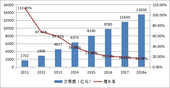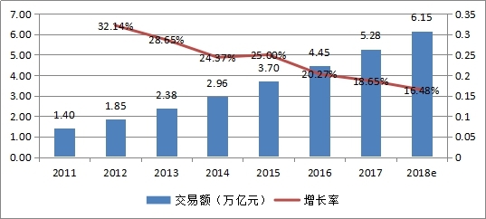 圖1:2011-2017行業(yè)電子商務(wù)交易額情況