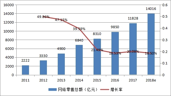 國家統(tǒng)計(jì)局電子商務(wù)交易平臺調(diào)查顯示,2017年全國電子商務(wù)交易額達(dá)29.16萬億元,同比增長11.7%(其中商品、服務(wù)類電商交易額21.83萬億元,同比增長24.0%;合約類電商交易額7.33萬億元,同比下降28.7%)。其中,全國網(wǎng)上零售額7.18萬億元,比上年增長32.2%(其中實(shí)物商品網(wǎng)上零售額5.48億元,增長28.0%,占社會(huì)消費(fèi)品零售總額的比重為15.0%)。