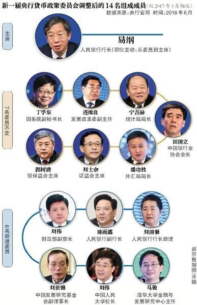 新一屆央行貨幣政策委員會成員大換血。6月15日,國務(wù)院辦公廳發(fā)布了關(guān)于調(diào)整中國人民銀行貨幣政策委員會組成人員的通知,在宣布新任央行行長易綱正式接棒周小川擔任主席的同時,有6名新進委員,7名委員不變,其中金融專家“三進三出”成為業(yè)內(nèi)關(guān)注焦點。