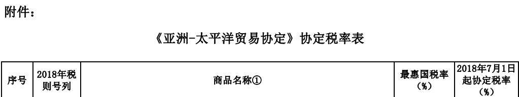 海關(guān)總署公告2018年第65號(關(guān)于實施《〈亞洲-太平洋貿(mào)易協(xié)定〉第二修正案》協(xié)定稅率的公告)