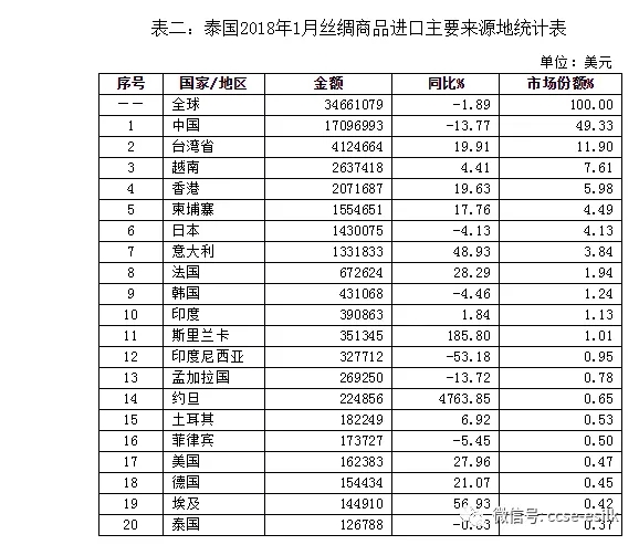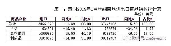 泰國(guó)2019年1月絲綢商品貿(mào)易情況
