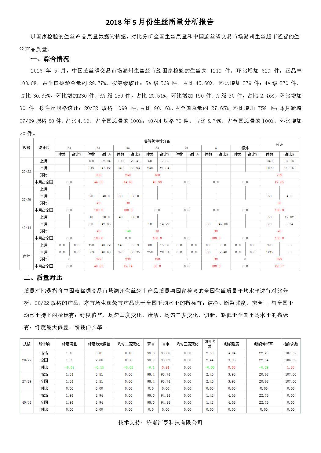 2018 年5 月份生絲質(zhì)量分析報(bào)告
