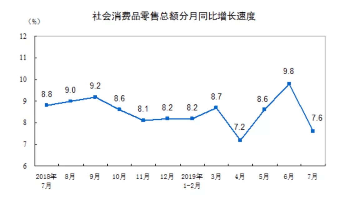 今日國家統(tǒng)計局公布了2019年7月中國經(jīng)濟(jì)運(yùn)行的主要數(shù)據(jù)。無論從供給側(cè)的生產(chǎn)來看,還是從需求側(cè)的投資和消費(fèi)增速來看,七月的數(shù)據(jù)都明顯回落,表明此前6月的改善具有較強(qiáng)的短期擾動性,經(jīng)濟(jì)仍然下行。