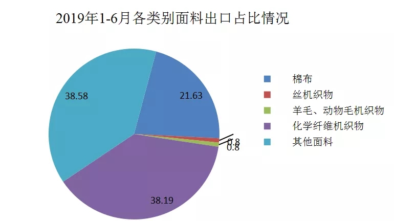 綢緞面料出口上,根據(jù)紡織商會,1-6月全國面料出口金額293.5億美元,增長2%。化纖機織物出口112.1億美元,增長7.1%,占比38.2%,帶動面料出口整體增長。其余各類別中,棉布出口63.5億美元,下降7.4%;絲機織物占面料出口總額的0.8%,共計2.3億美元,下降29.5%;羊毛動物毛機織物出口2.3億美元,同比增長1%。