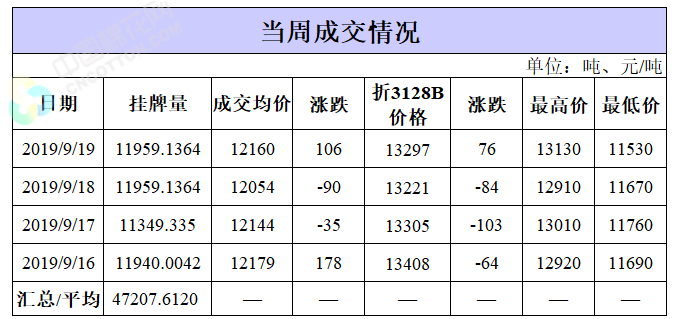 截至9月19日,累計(jì)計(jì)劃出庫(kù)107.06萬(wàn)噸,成交最高價(jià)15930元/噸,成交最低價(jià)10750元/噸。