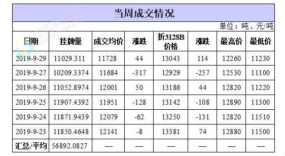 截至9月29日,累計計劃出庫115萬噸,成交最高價15930元/噸,成交最低價11060元/噸。