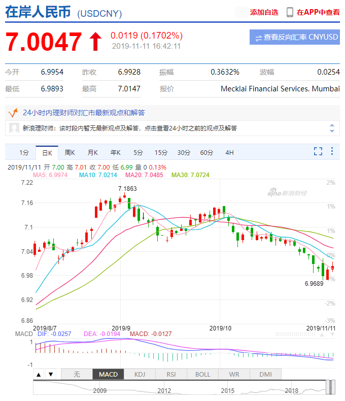人民幣美元匯率(20191111)