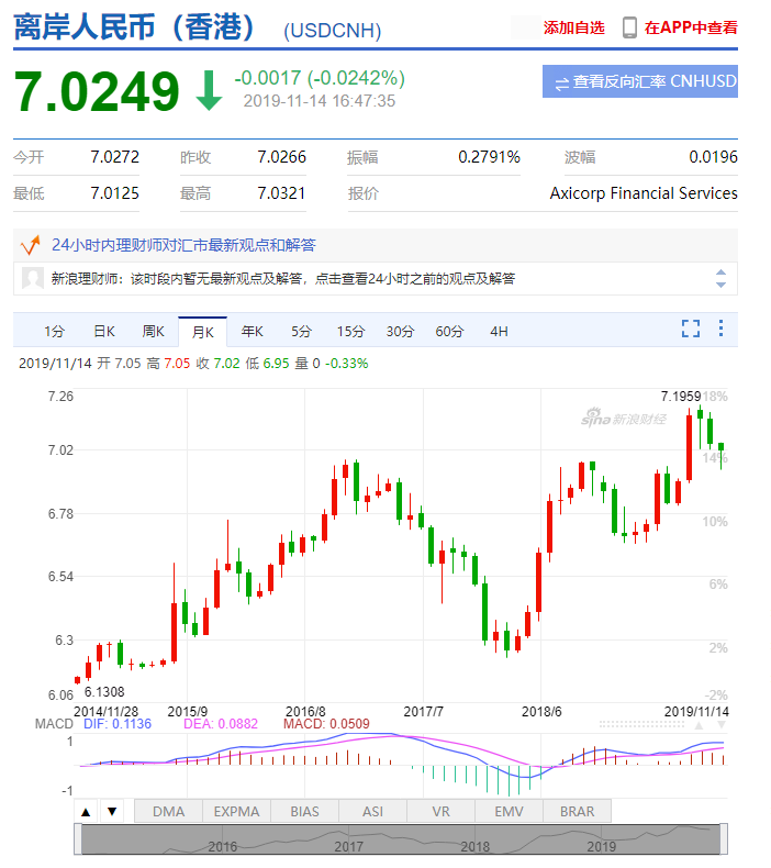 人民幣美元匯率(20191114)