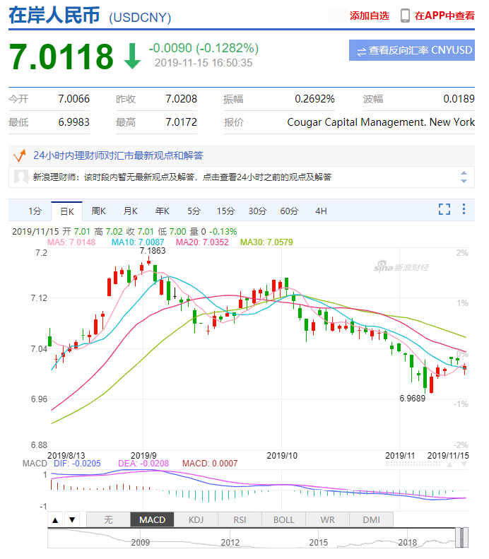 人民幣美元匯率(20191115)