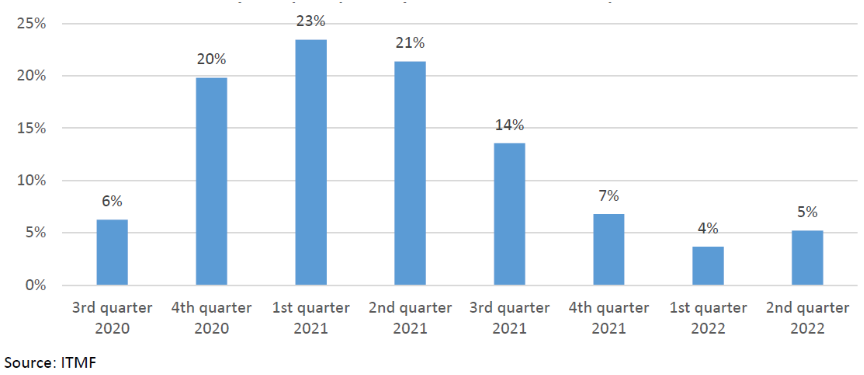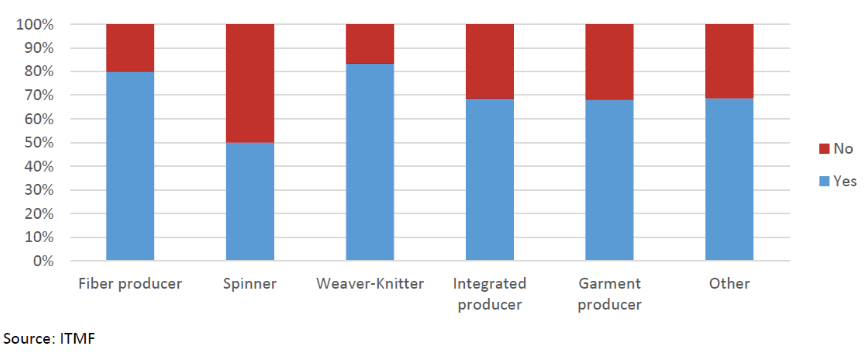 調(diào)查還顯示,自危機(jī)開始以來,紡織價值鏈各環(huán)節(jié)大多數(shù)企業(yè)不得不自行取消/推遲訂單。在紡紗行業(yè),50%的企業(yè)取消/推遲了訂單,而在織造/針織行業(yè),這一數(shù)字甚至達(dá)到83%(圖6)。